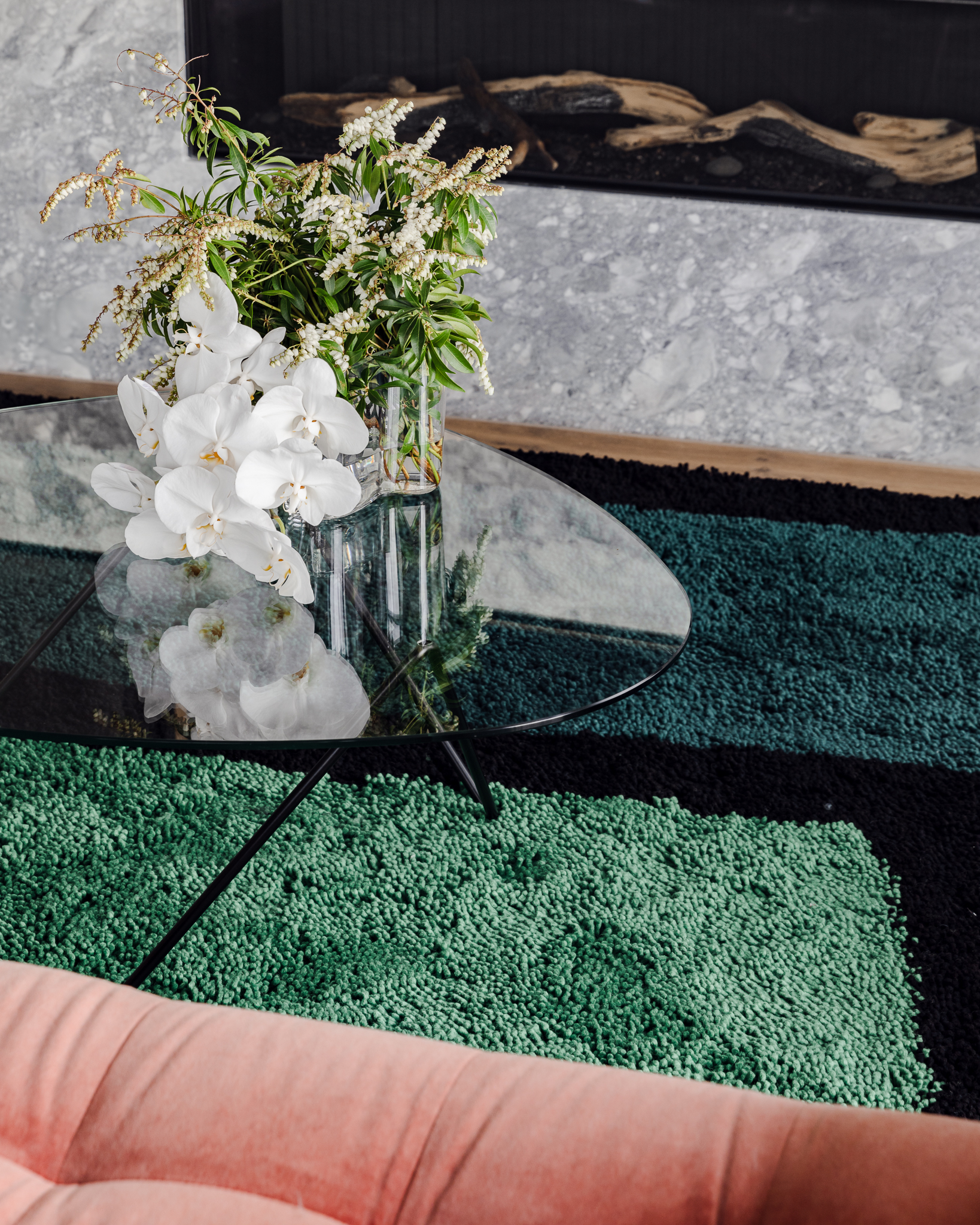 Our Melbourne interior designers reimagined the living room, hallway, winter garden (sunroom), master bedroom and guest bedroom. The scope included furniture procurement, wall finishes, custom lighting, curated art placement, soft furnishing selections and rug customisation.
