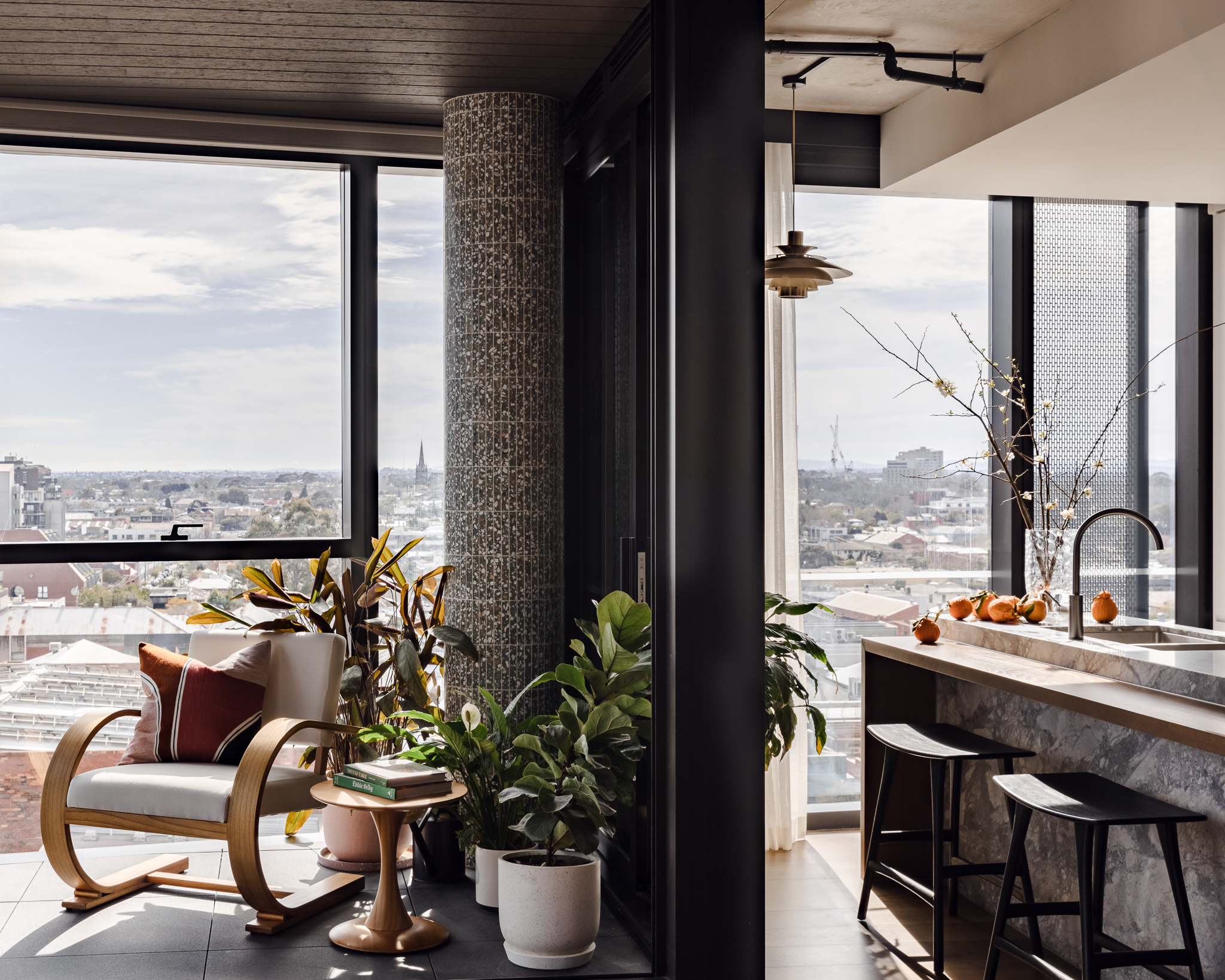 The Stylesmiths were engaged to deliver a complete residential interior design for this two-bedroom apartment in Collingwood — one of Melbourne’s most vibrant inner-city suburbs. Designed for a creative couple, the brief called for a colour-rich, industrial-style apartment inspired by the local artistic neighbourhood vibe. The clients — along with their dog and cat — wanted a space that reflected their bold personalities, love of art, and appreciation for bespoke design.